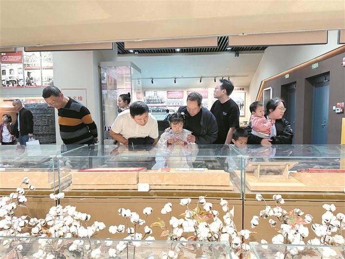 10月1日,在新疆兵团军垦博物馆内,游客带着孩子观看文物,感受兵团精神。 兵团日报常驻记者 李秀 摄