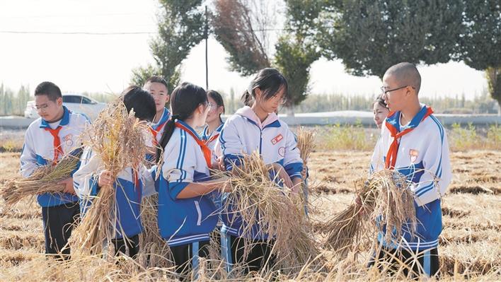 10月8日,四师六十八团中学组织学生前往六连稻田生态养殖基地,开展“稻花香里话农耕”主题实践活动。 兵团日报常驻记者 杨俊钦 通讯员 李宗银 摄